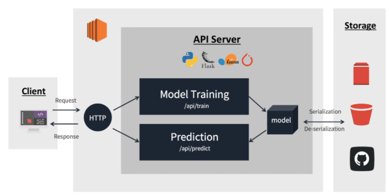 - 별도의 모델 추론을 위한 API 서버를 운용하여 내부 혹은 외부 통신을 통해 예측/추론값 반환
