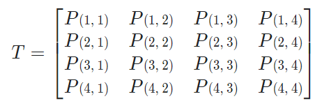 만일 아래의 \(T\)의 각 요소 \(P(i,j)\)가 벡터라면, \(T\)는 3-텐서로 볼 수 있다.