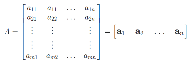 여기서 \(a_i\)는 행 \(A\)의 \(i\)-번째 열벡터이다.