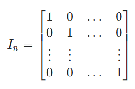 항등행렬은 숫자의 1과 같은 존재로 행렬의 곱에 대한 항등원 역할을 한다.