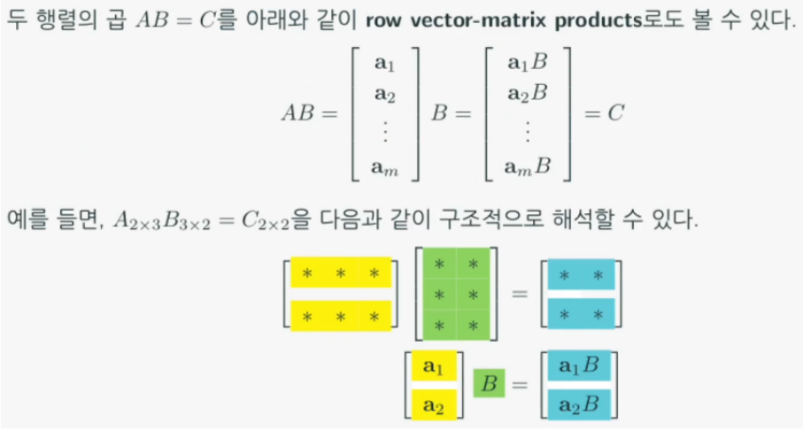 - 행렬은 행백터로 이루어진 열벡터이다.
