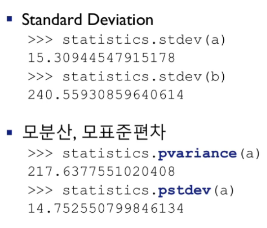 statistics : 모듈에서는 다음의 함수를 이용한다.