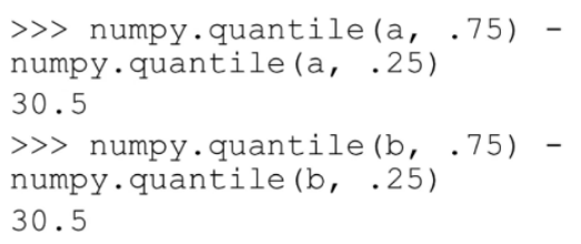 numpy 모듈의 quantile() 을 이용한다. (quantile : 백분위수, quartile : 사분위수)