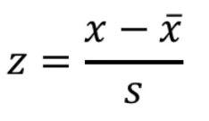 값에서 표본평균을 뺀 후에 표본표준편차로 나눠준다.