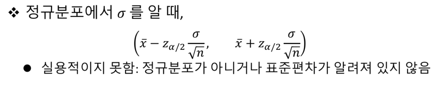 실용적이지 못함 \(\rightarrow\) 보통은 정규분포가 아니거나 표준편차가 알려져 있지 않음