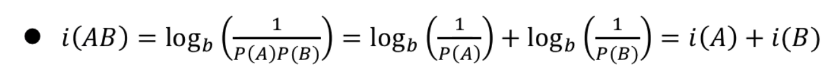 두 사건 A, B가 동시에 일어났을 때의 자기정보 : \(i(AB)\)