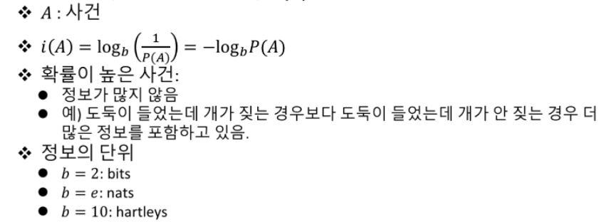 어떠한 사건에 대해서 그 사건이 발생할 확률을 가지고 정보의 량을 표현