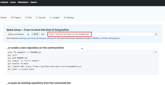 - <원격저장소 주소>는 Github 홈페이지에서 생성한 원격저장소에서 얻을 수 있음